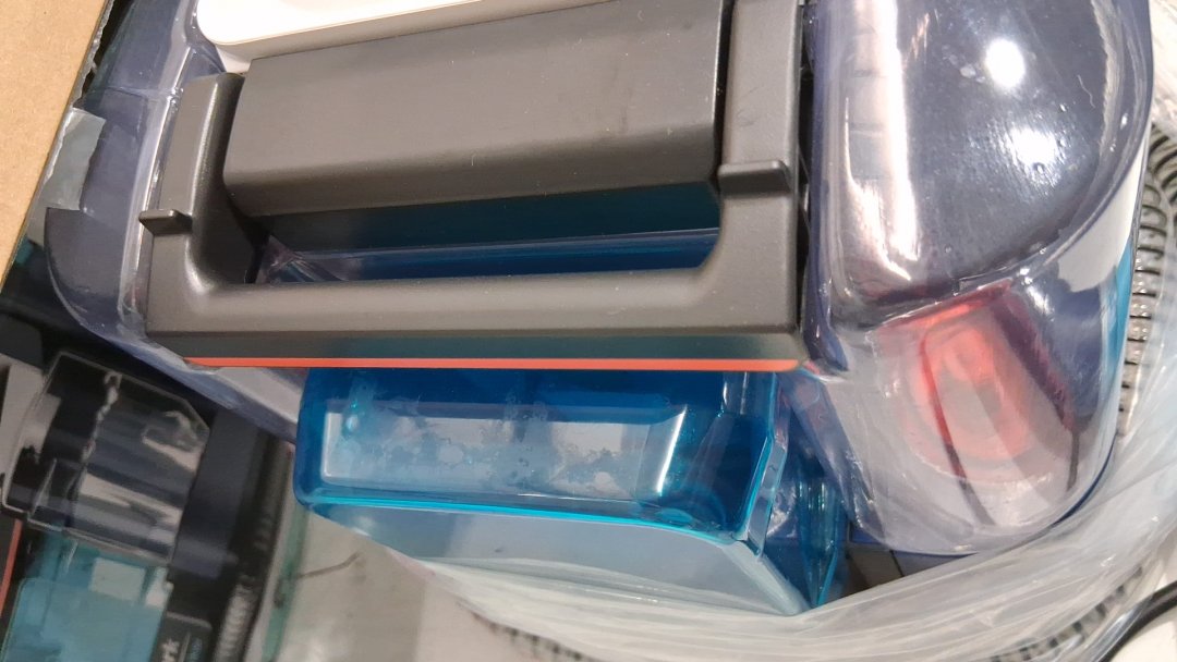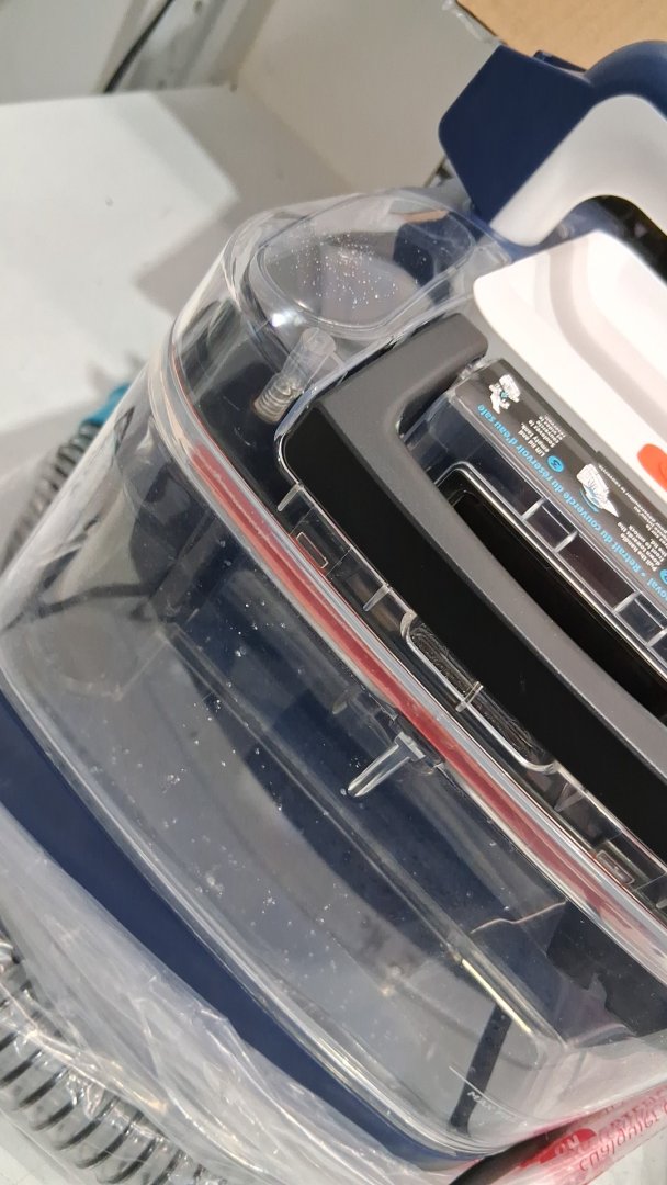 Item smells like vinegar indicating to me its been previously used as well as some white markings