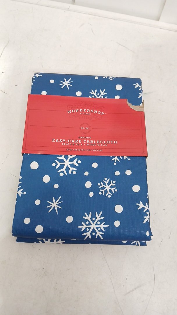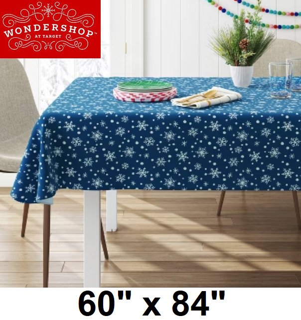 wondershop rectangular oblong easy-care holiday table cloth - 60" x 84" - navy blue snowflakes