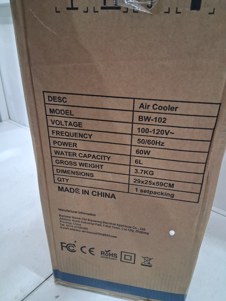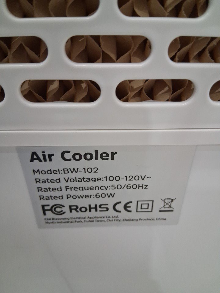 Portable 3-speed evaporative air cooler - 6l - white/black (model: bw-102)
