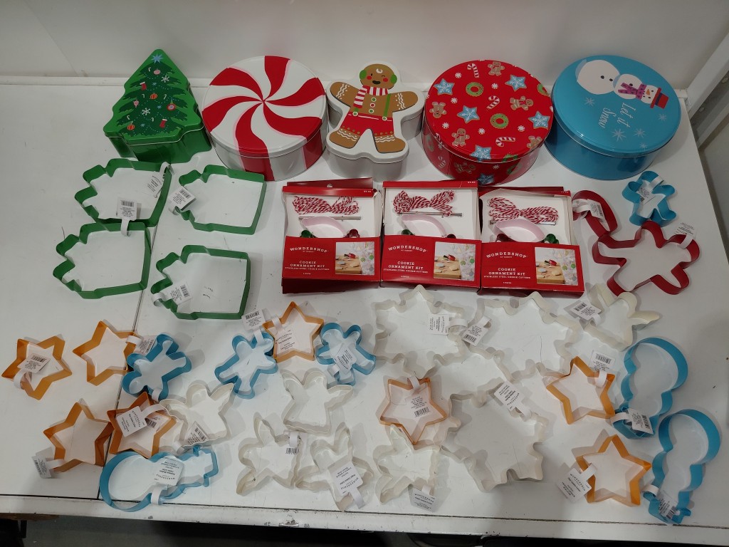 30+ assorted christmas baking supplies - cookie cutters/tins - styles/colours vary