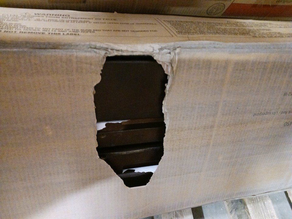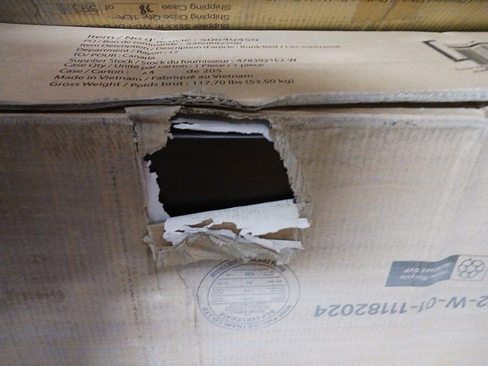 The box has a large tear on one side, which has exposed part of the contents inside. Upon thorough inspection, few pieces that's exposed have few scratches on them but overall it's in new condition