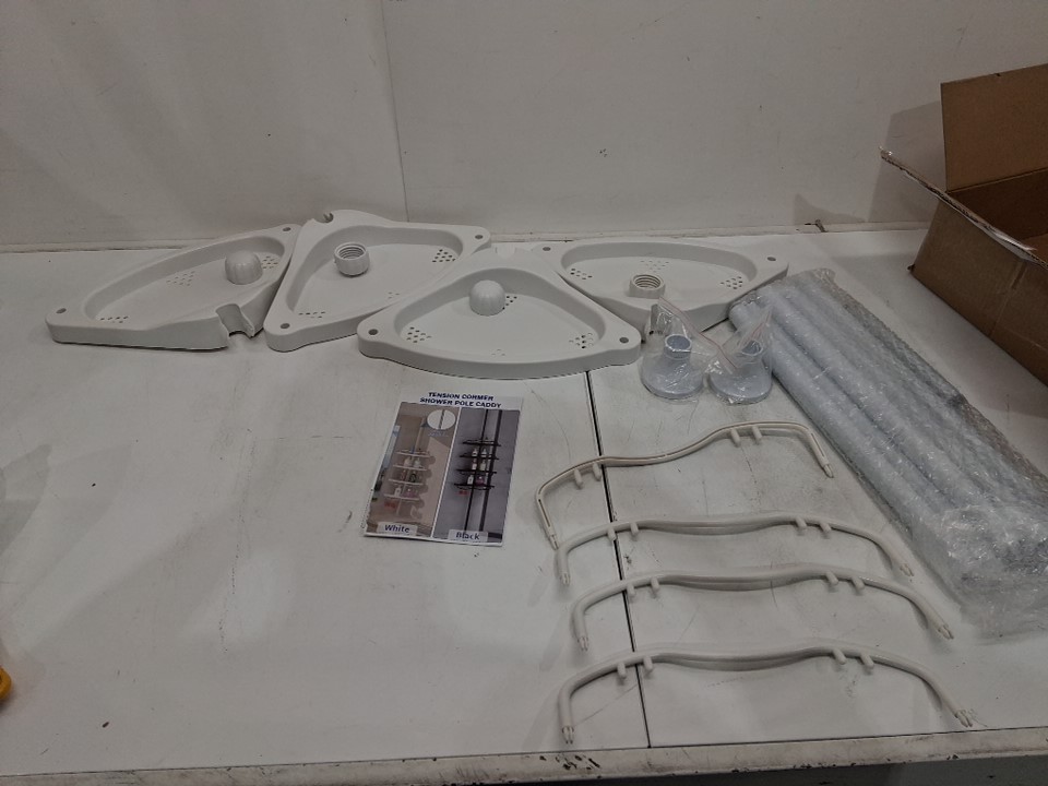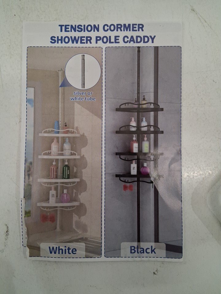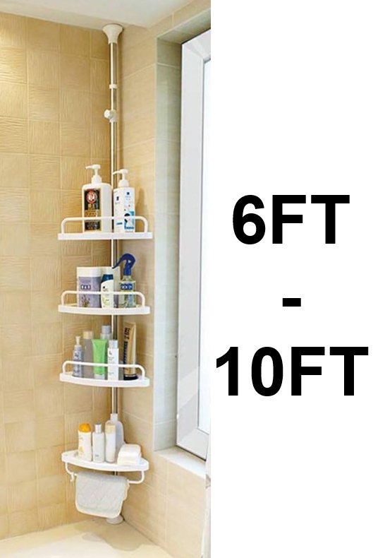 Corner Shower Caddy Tension Pole with 4 tiers - 6FT-10FT- White