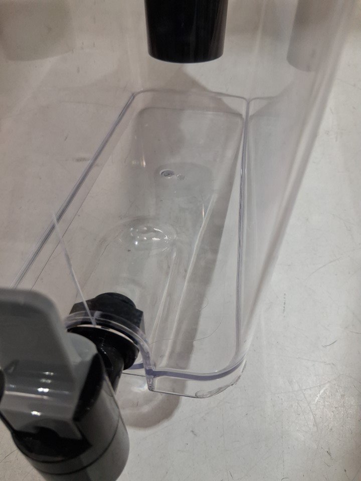 The item has a crack on the front part of the dispenser and some sticky residue on the top. See photos for reference.