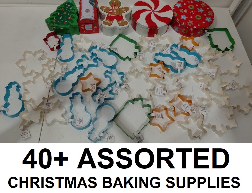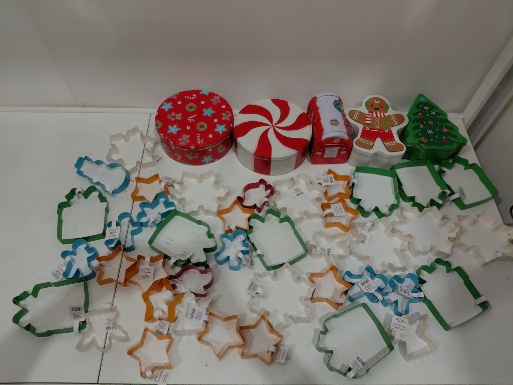 40+ assorted christmas baking supplies - cookie cutters/tins - styles/colours vary