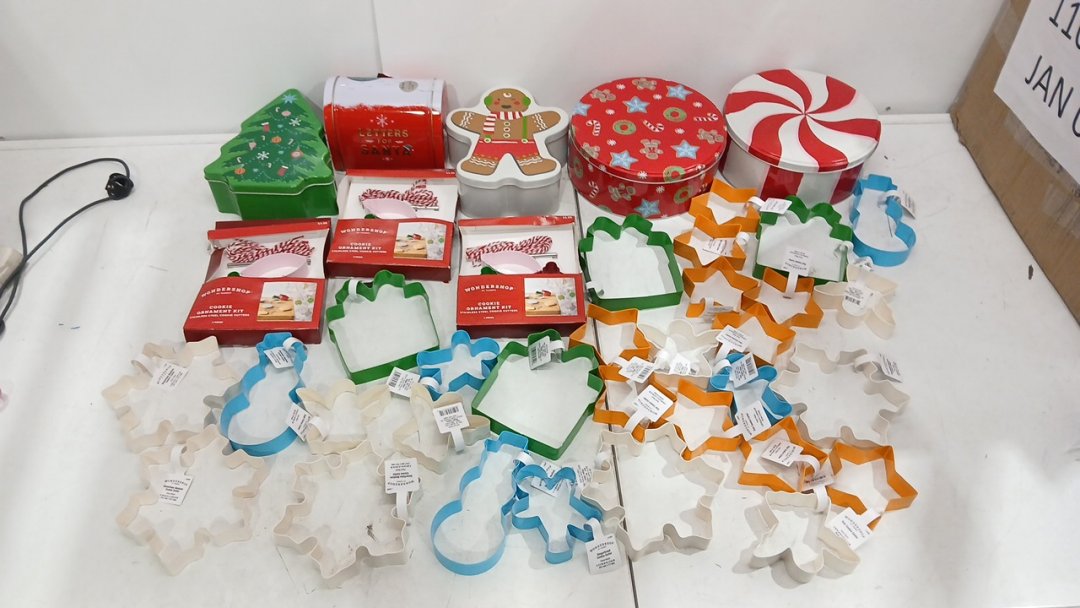 30+ assorted christmas baking supplies - cookie cutters/tins - styles/colours vary