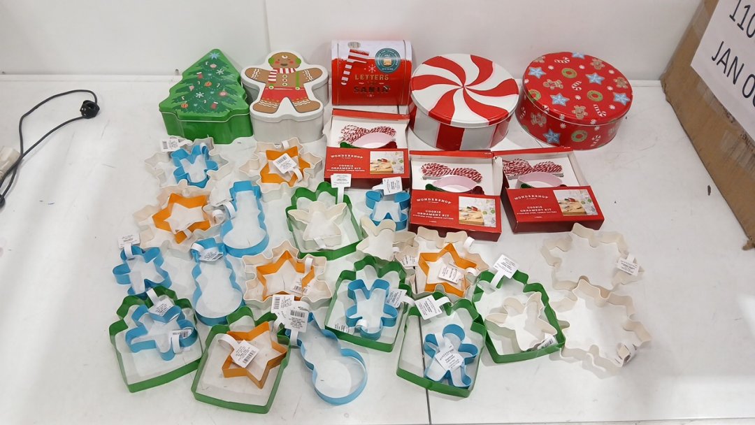 30+ assorted christmas baking supplies - cookie cutters/tins - styles/colours vary