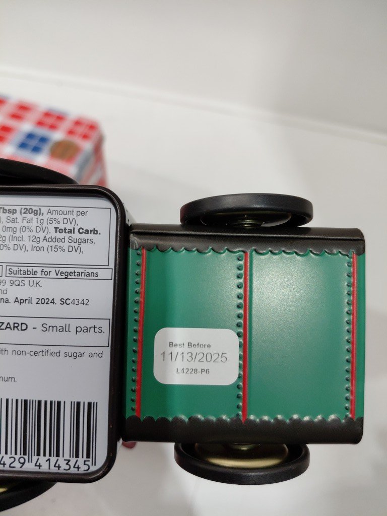 no cookies inside tin only hot chocolate in train tin (see photos)
