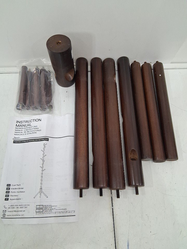 PIPISHELL Sturdy Wooden pine Coat Tree/rack with 8 Hooks and 3 Adjustable Sizes - 68.9" max height - dark brown
