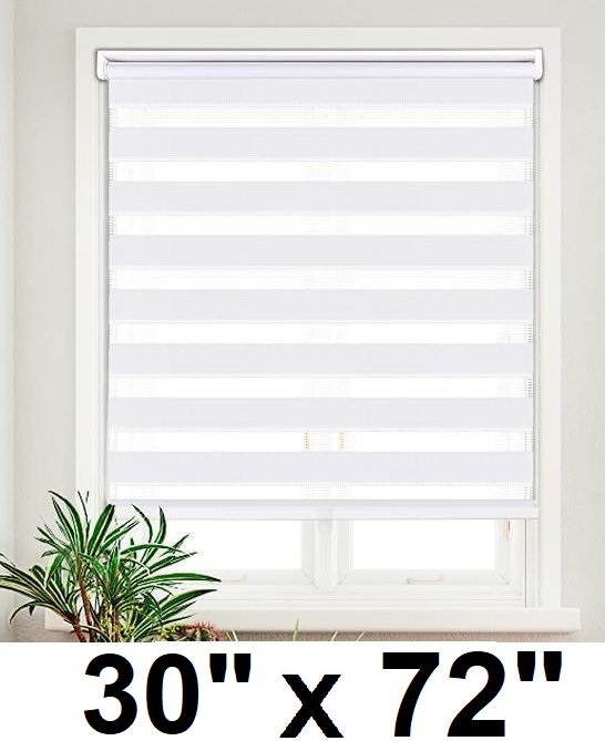 SEEYE CORDLESS ZEBRA BLINDS - DUAL LAYER LIGHT FILTERING - 30" x 72" - WHITE (MODEL: WSBML-W)