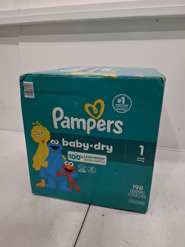 198pk pampers baby-dry leakproof disposable diapers - size 1 (8-14lbs) - sesame street