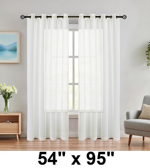 (2 PANEL SET) RANDALL LINEN SHEER CURTAINS WITH ELEGANT NICKEL GROMMET - 54" x 95" - SHEER WHITE