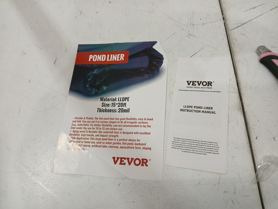 VEVOR HIGH DENSITY POLYETHYLENE RECTANGULAR POND LINER - 20FT x 15FT - BLACK