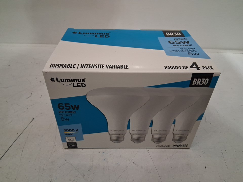 4PK LUMINUS LED DIMMABLE BR30 LED LIGHT BULBS - 11W/65W EQUIVALENT - 850LM - DAYLIGHT/5000K - (MODEL: PLYC5295)