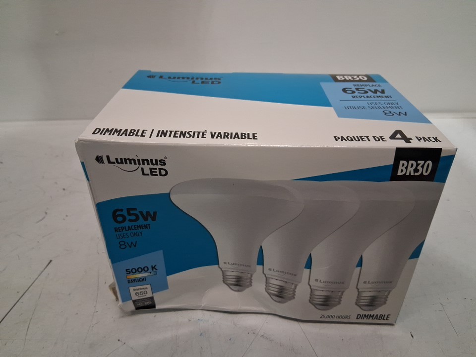 4PK LUMINUS LED DIMMABLE BR30 LED LIGHT BULBS - 11W/65W EQUIVALENT - 850LM - DAYLIGHT/5000K - (MODEL: PLYC5295)