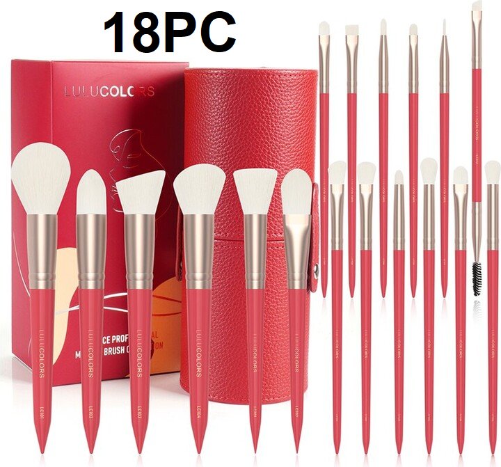 18PC LULUCOLORS Makeup Brush Set with Holder Case - RED