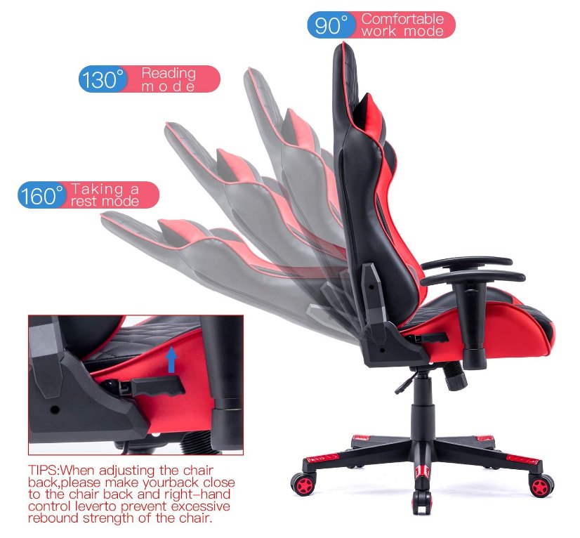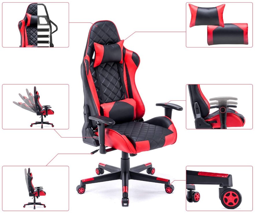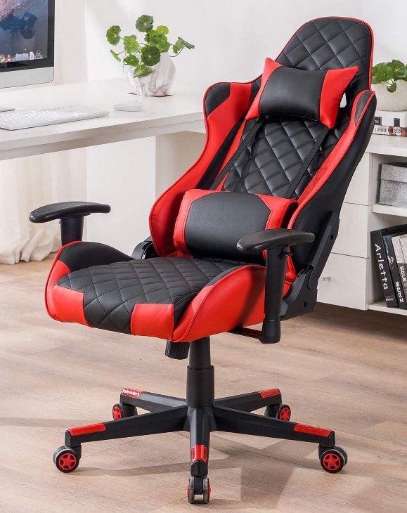 DJ WANG Upgraded Gaming Chair - High Back Computer Desk Chair PU Leather Executive and Ergonomic Swivel, Headrest and Lumbar Support RED (MODEL: LK-2269RED)