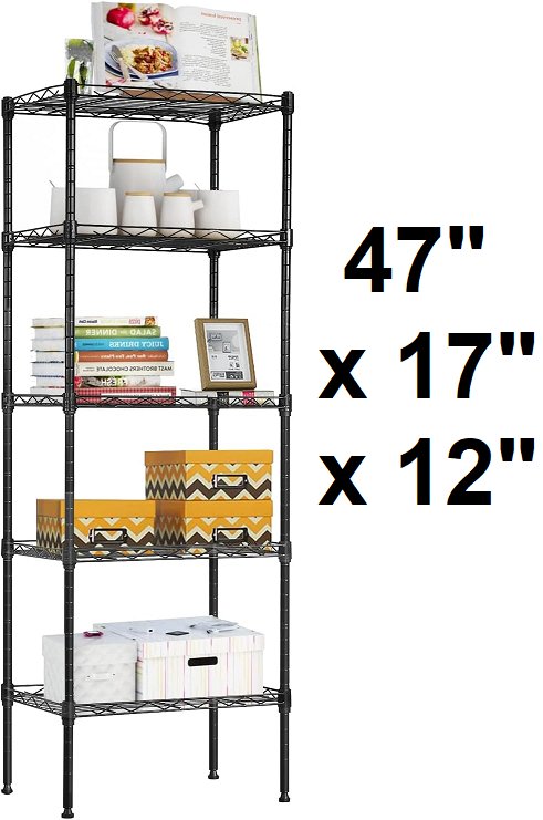 5-tier Adjustable Metal Shelving Unit - 47" x 17" x 12" - black (MODEL: ws-t7p6-black)