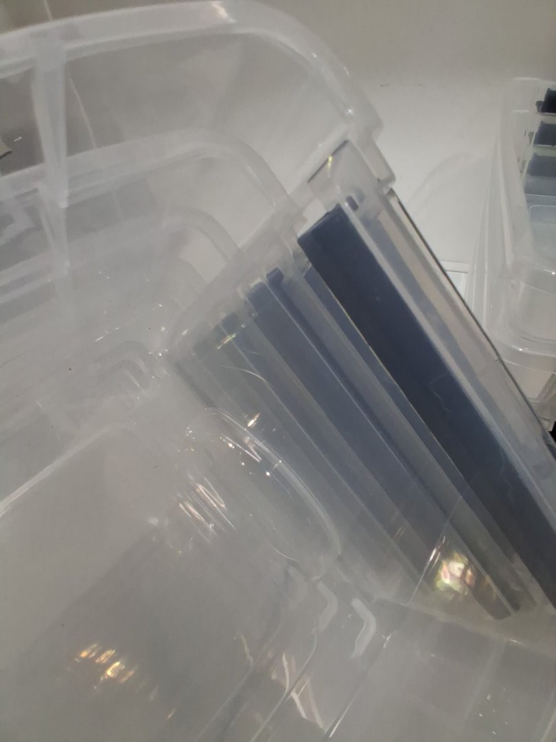 It has scratches, and some of the containers and lids are damaged on the side, but it still closes perfectly.