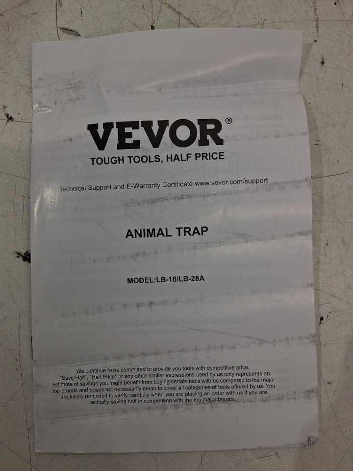 VEVOR HUMANE GALVANIZED IRON ANIMAL TRAP - 24" x 8" x 8" - SILVER (MODEL: LB-18)