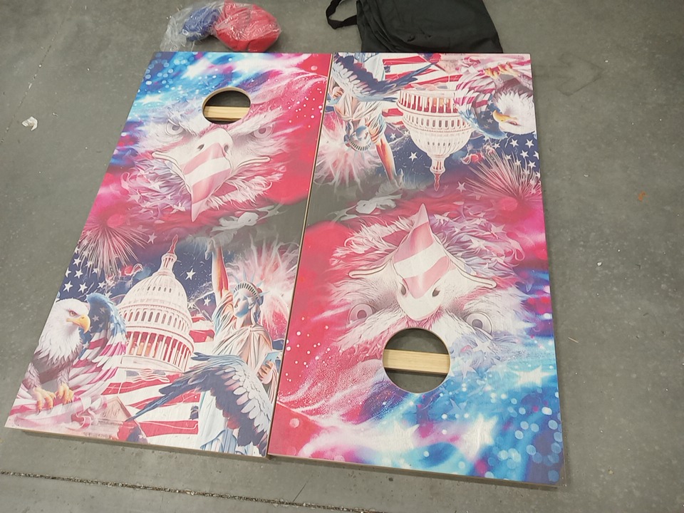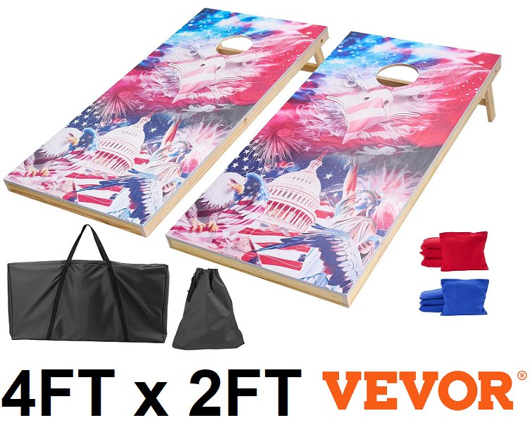 VEVOR WOODEN cornhole set with carry bag - 4ft x 2ft - red/white/blue (model: 4a-29-4)