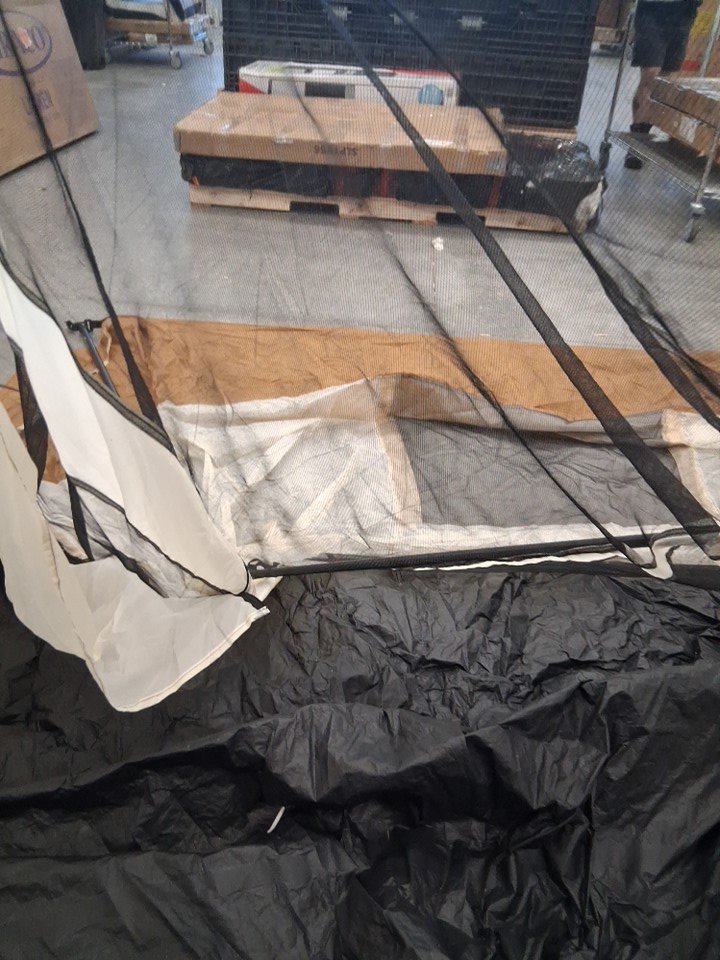 Please Read Full Notes: - The item has debris on the inside and walls consistent with previous use. (Grass/leaves) - There does not appear to be any evident damage to any of the screens, zippers or walls. - The item is missing the fly and ground stakes