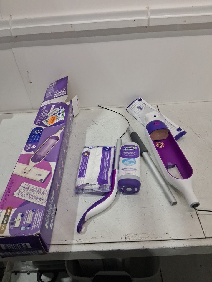 The wire cable connecting the button and spray is cut/broken so we believe the item can only be used as a regular mop.