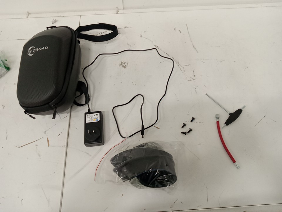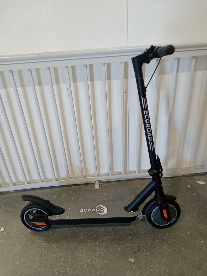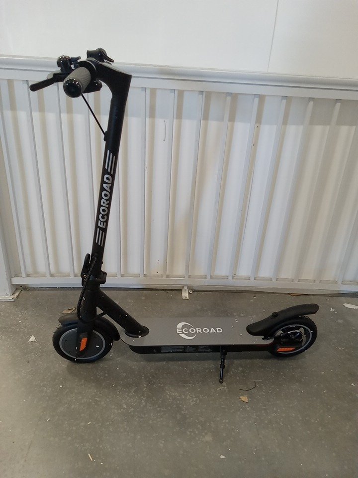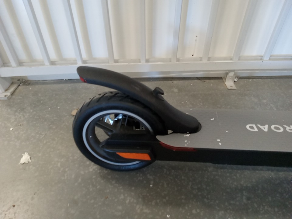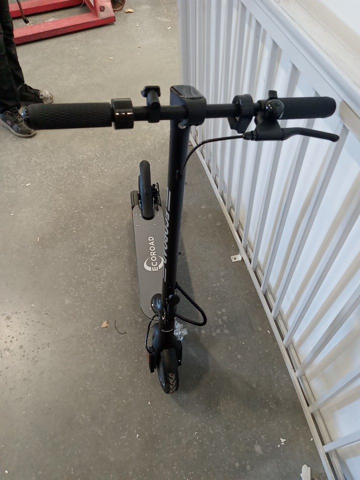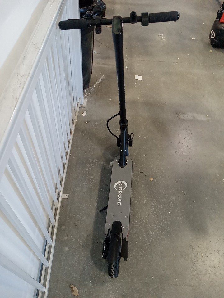 Item has some dirt marks from previous light use and assembly. However the scooter does not turn on (may be fixed).