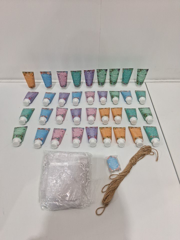 36pk y1tvei bible verse hand cream gift sets with ribbons, tags and mesh bags - 30ml each
