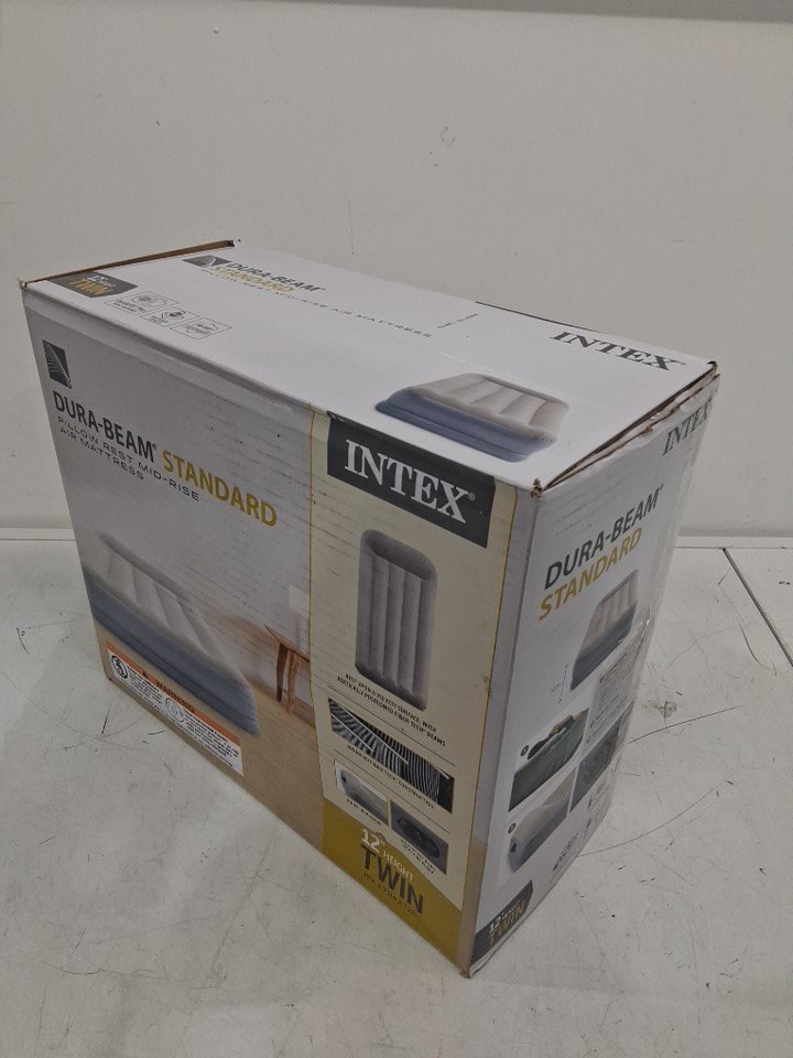 Intex Dura-Beam Standard Pillow Rest Mid-Rise Air Mattress With Built-In Electric Pump - Twin 12" - Grey (Model: 64115ED)
