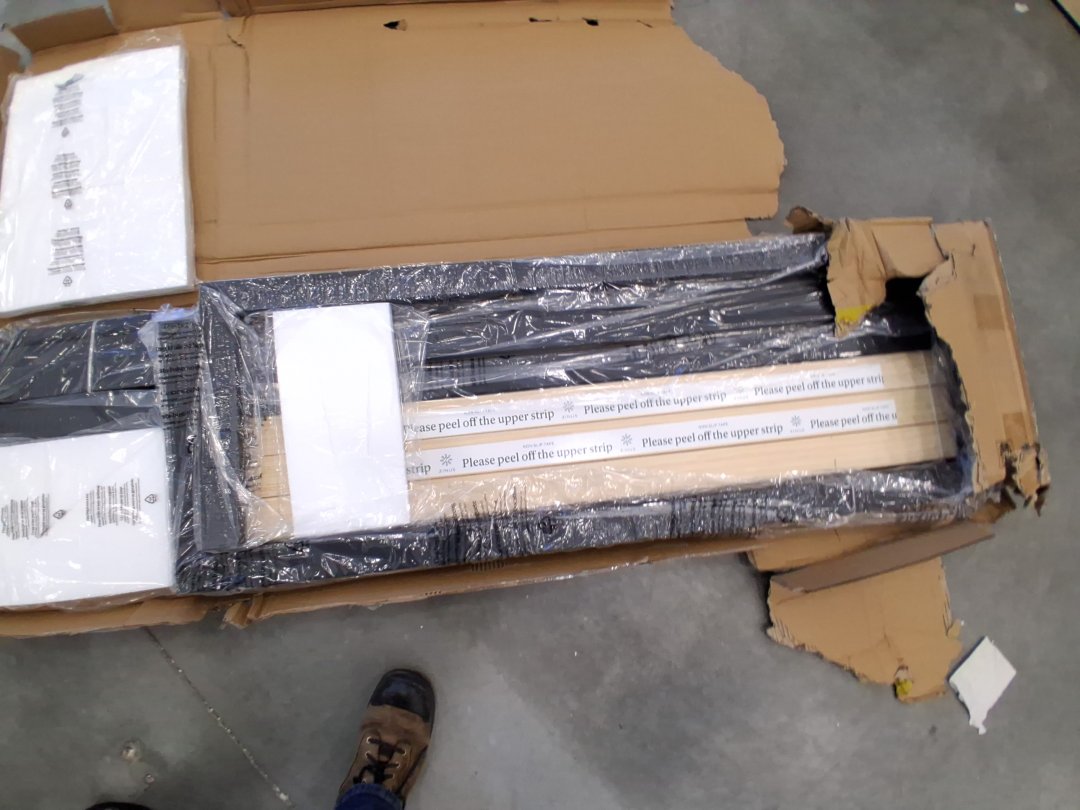 box was distressed enough to inspect, only small scuff to the planks, almost undetectable. should not affect cosmetic outside