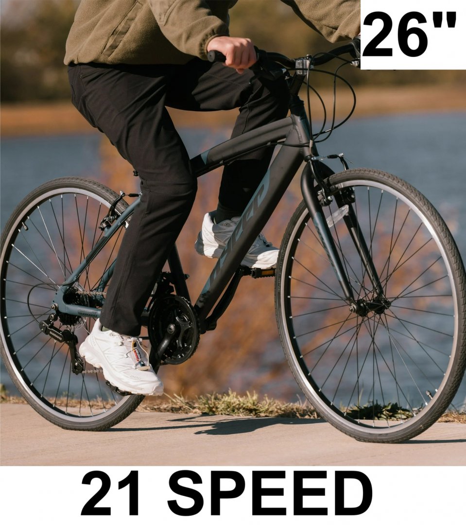 men's hyper spinfit hybrid bike with 21 speeds - 700c, 26" wheels - black/blue