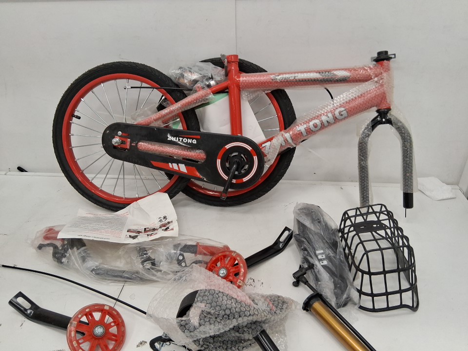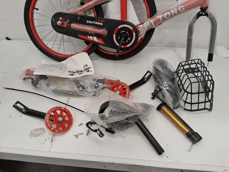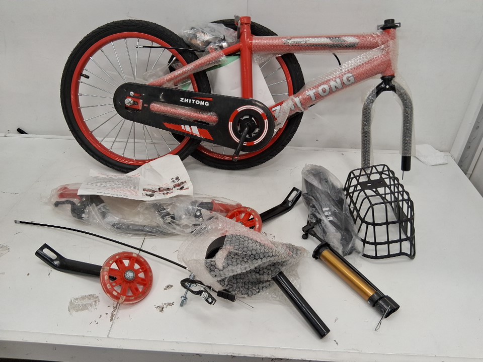ZHITONG Children's Bike with Flash Training Wheels and Water Bottle - RED/BLACK