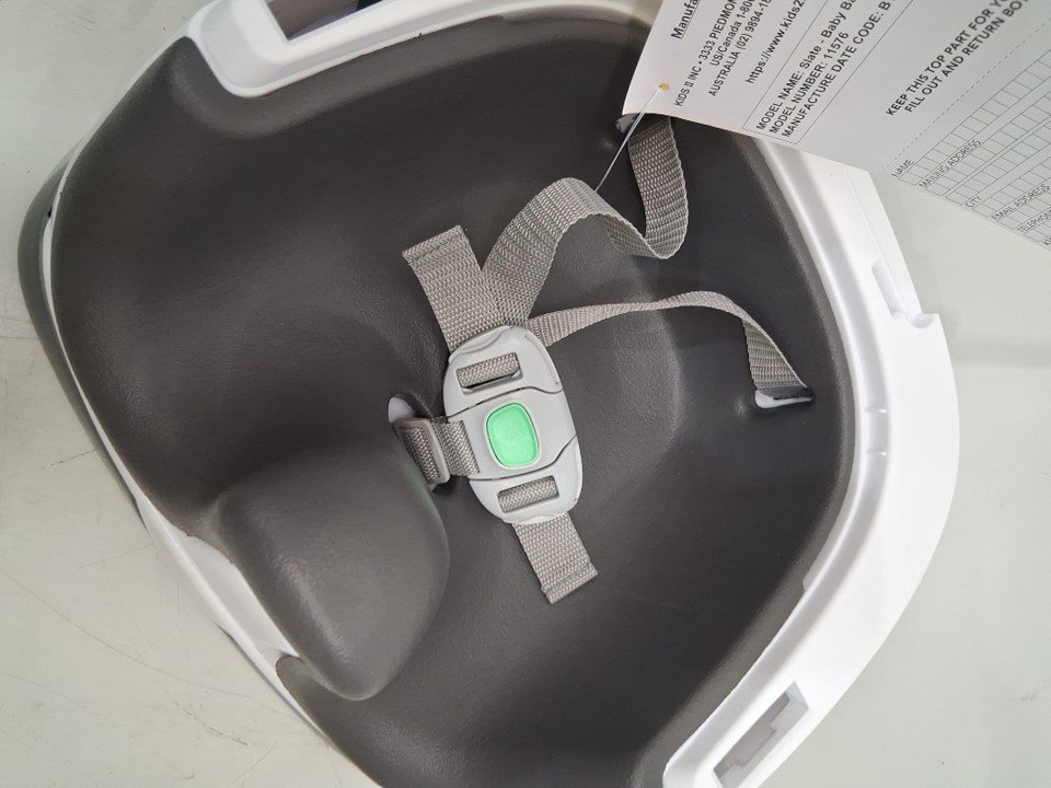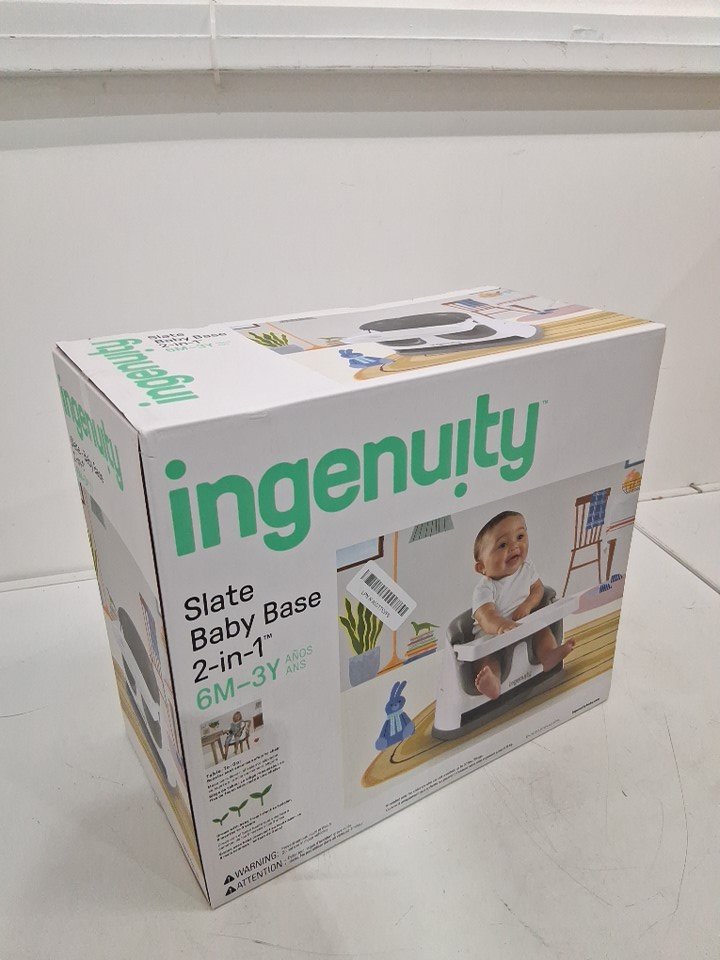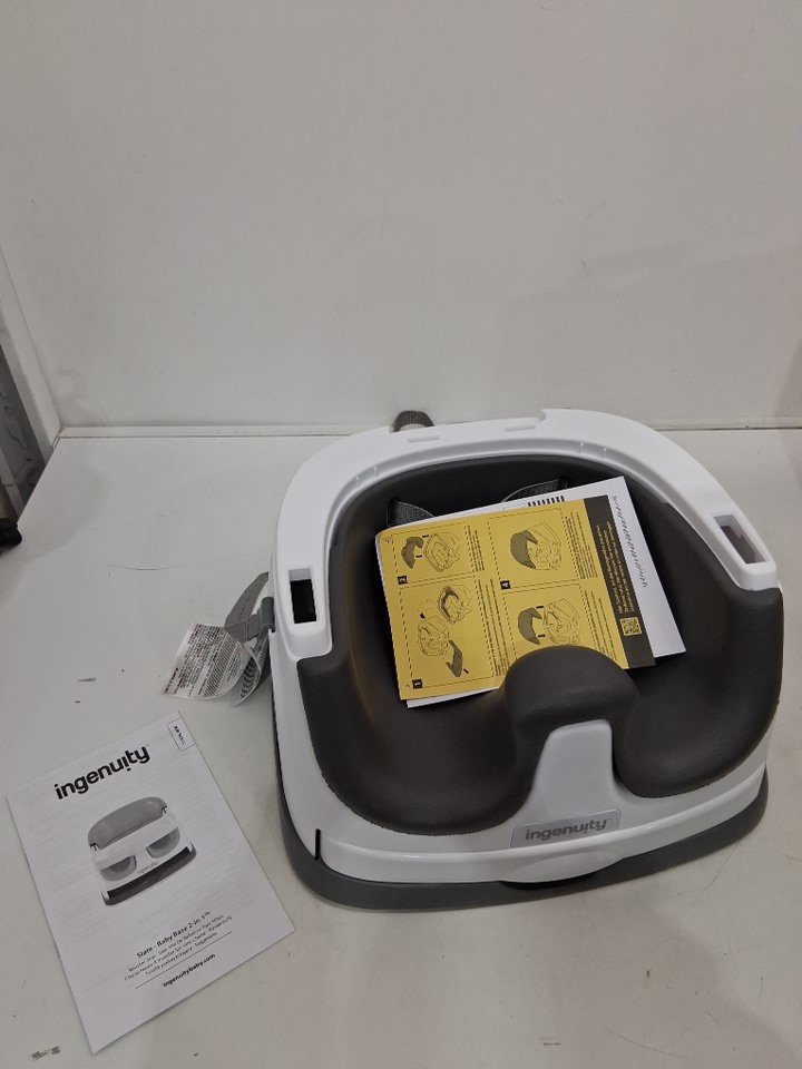 INGENUITY BABY BASE 2-IN-1 BOOSTER SEAT WITH FOOD & DRINK TRAY - 50LBS CAPACITY - WHITE/SLATE GREY (MODEL: 11576)