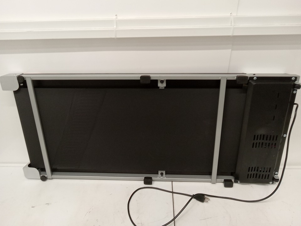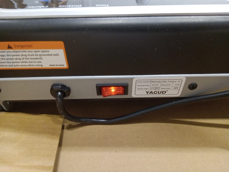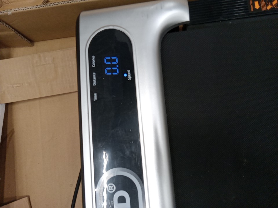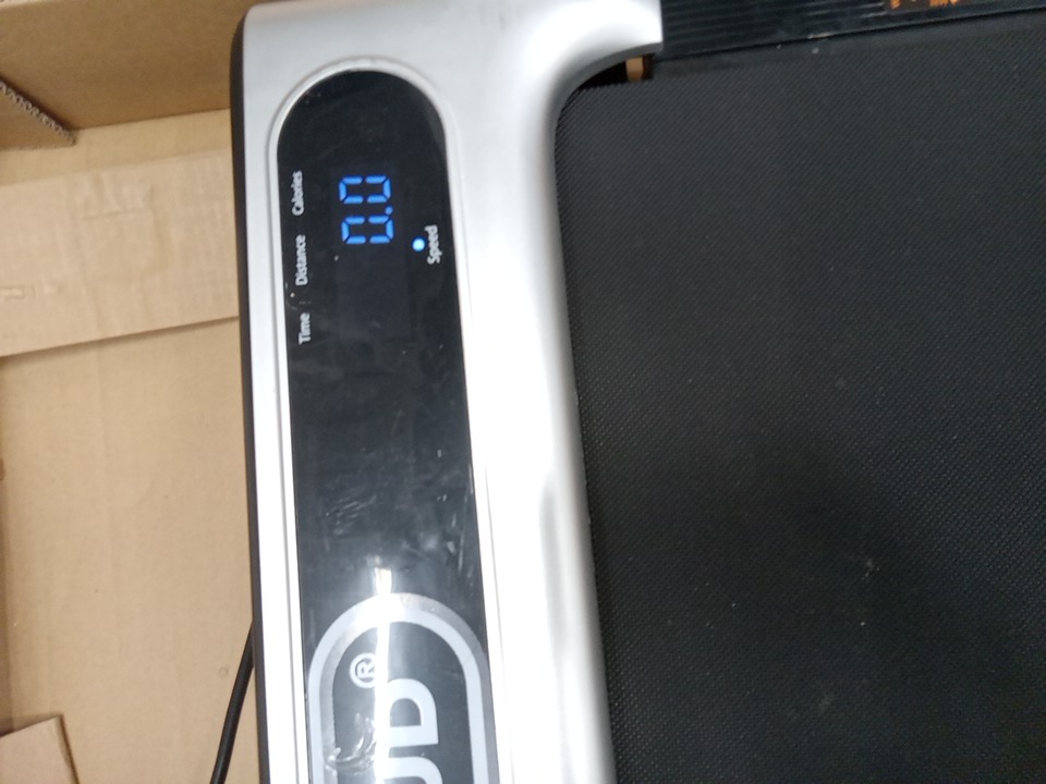 The item powers on but doesn't start as the remote is defective, a new remote can be purchased separate. there are light handprints along the edges of the treadmill from previous use. see photos