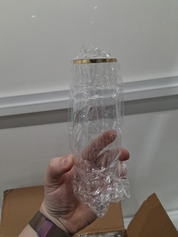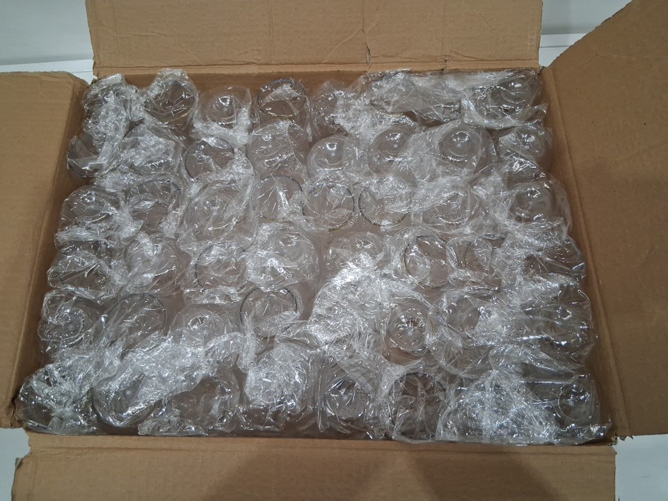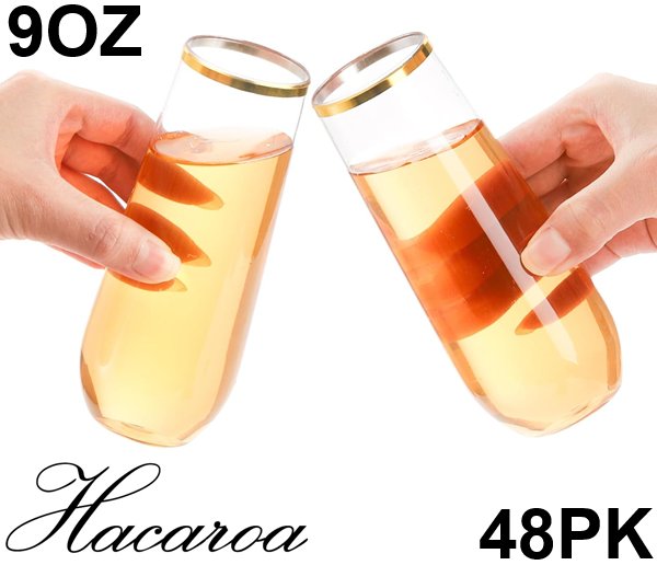 48PK Hacaroa Plastic Stemless Champagne Flutes - 9OZ - CLEAR/GOLD RIM