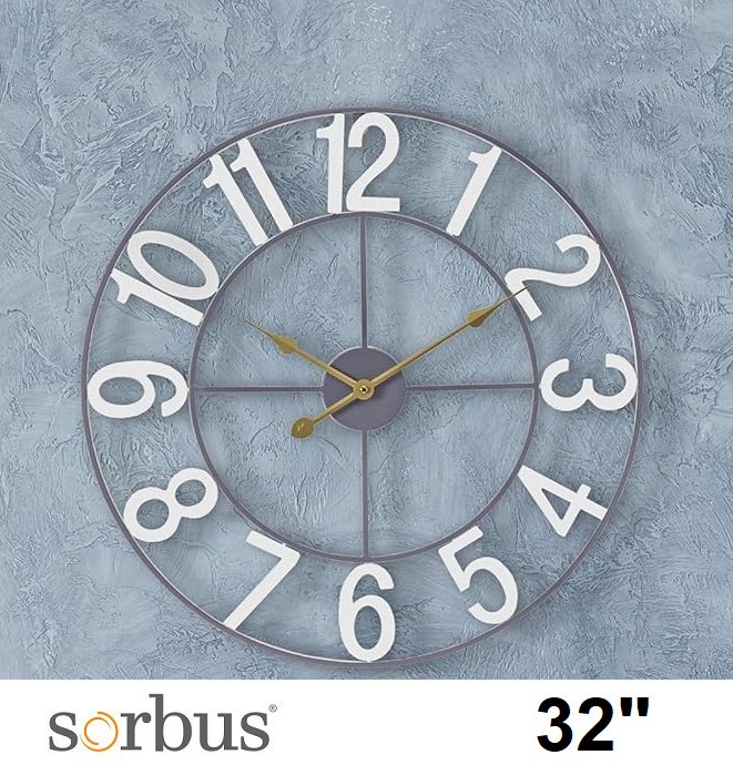 Sorbus Wall Clock Large Analog Clock - 32" - Silver (model: CLK-WAL80N-SIL)