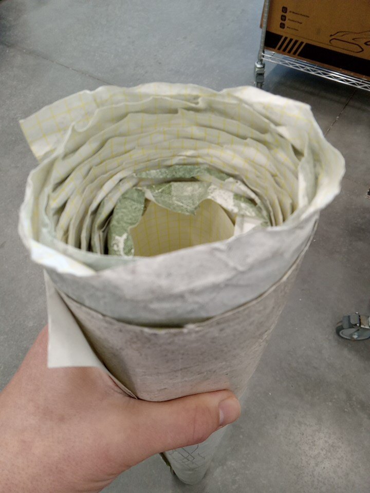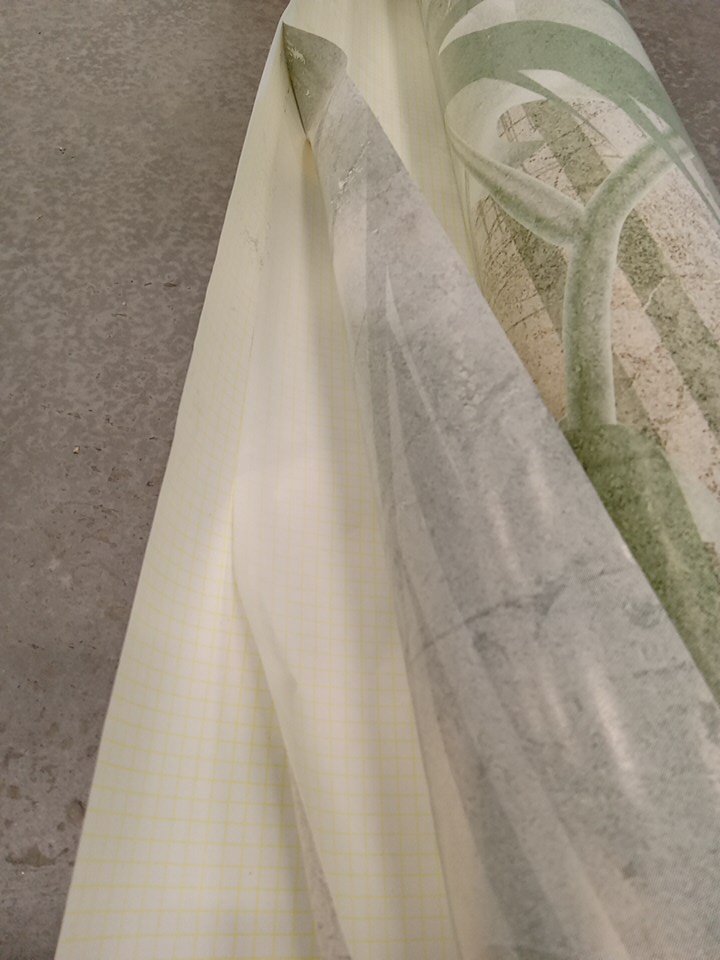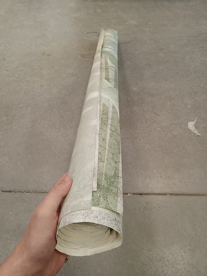 Some parts of the wallpaper are stuck together and pulling them apart is causing some pats to tear the finished side. There is also part of one edge that has become a bit crumpled. Customer will require probably heating up parts of the wallpaper with a heat gun to properly pull apart and use the item without causing more damage.