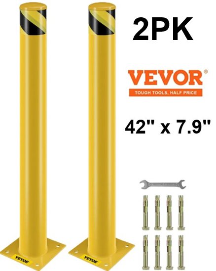 2PK Vevor Steel Safety Bollards with anchor bolts - 42" x 7.9" - Yellow/Black