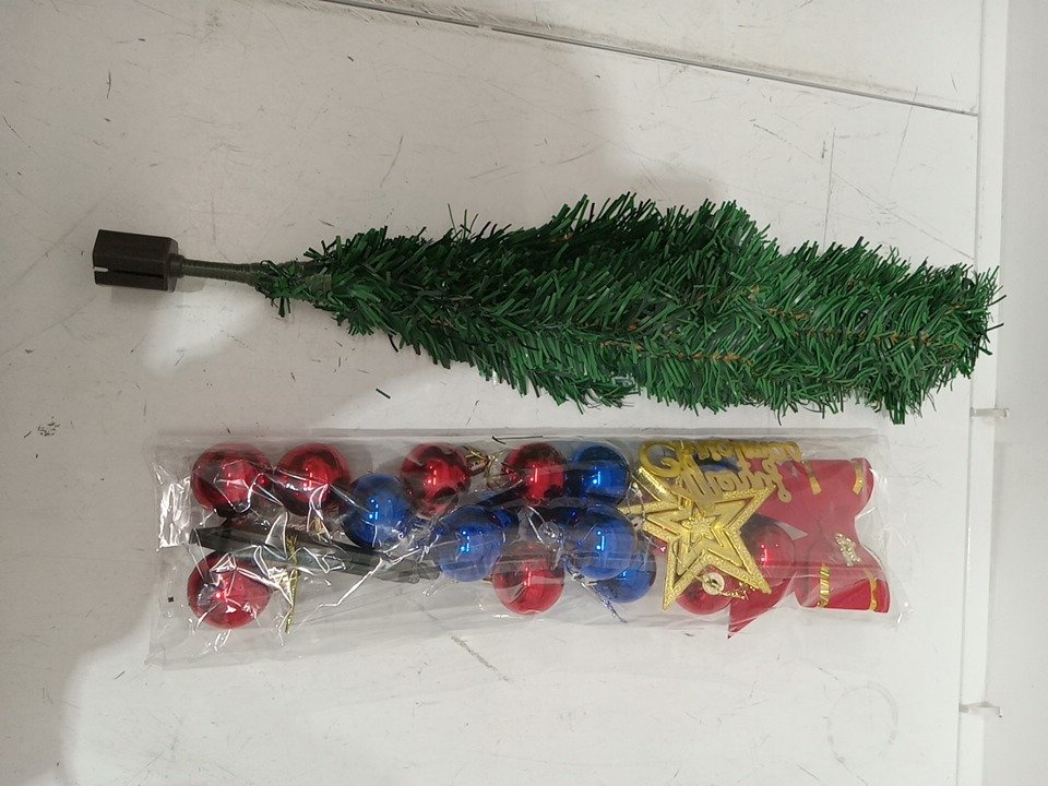 2 Mini Artificial tabletop Christmas Tree with 50 LED Lights, Tree Topper and 18 Ornaments - 24" - green