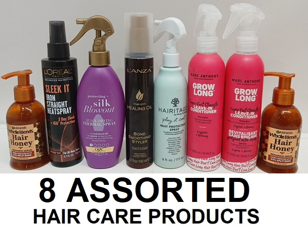 8 ASSORTED HAIR CARE PRODUCTS - MARC ANTHONY/ LOREAL/GARNIER/ OGX/LANZA/HAIRITAGE
