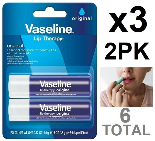 3 (2PK) Vaseline Lip Therapy Lip Balm with Petroleum Jelly - 4.8g / each - Original - (6 TOTAL)