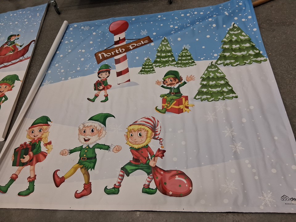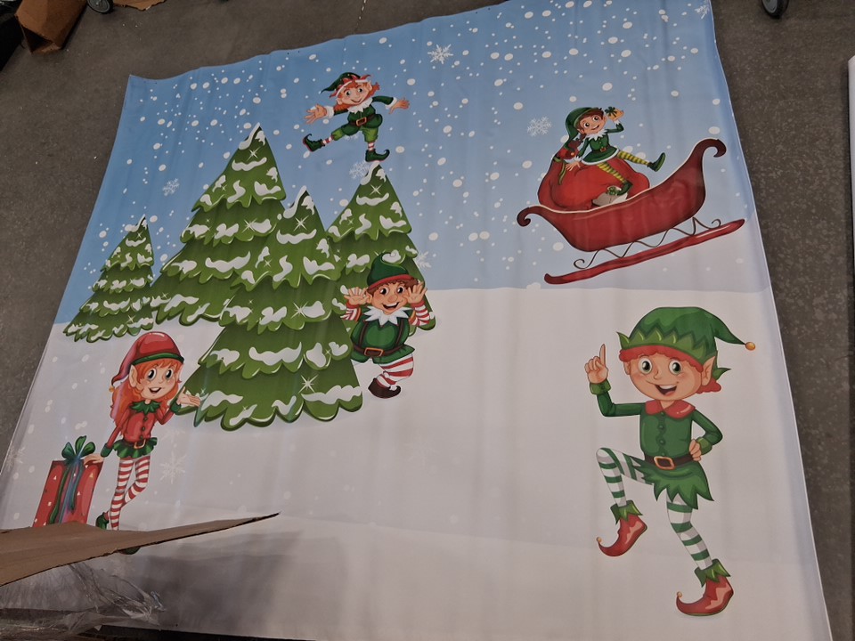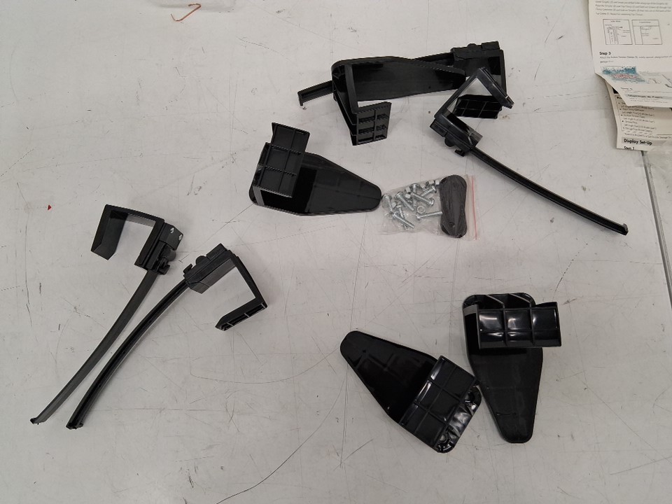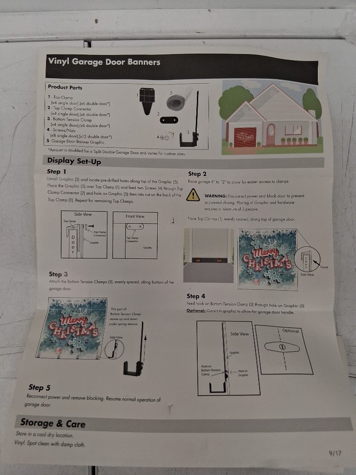 Please note that the item might have dust/debris from our warehouse inspection There appears to be one broken plastic leg used to attach the banners (See Photos) You will likely have to fix the leg or install the banner with other methods. (Each panel measures 7FT x 8FT)