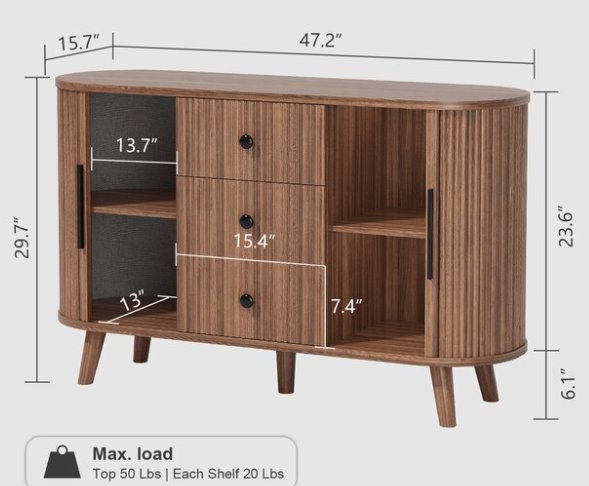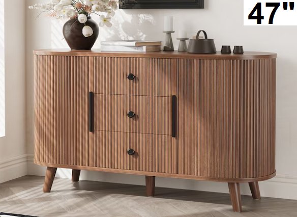 pocassy Sleek Mid-Century fluted sideboard cabinet with doors and drawers - brown (model: snbs067ww)
