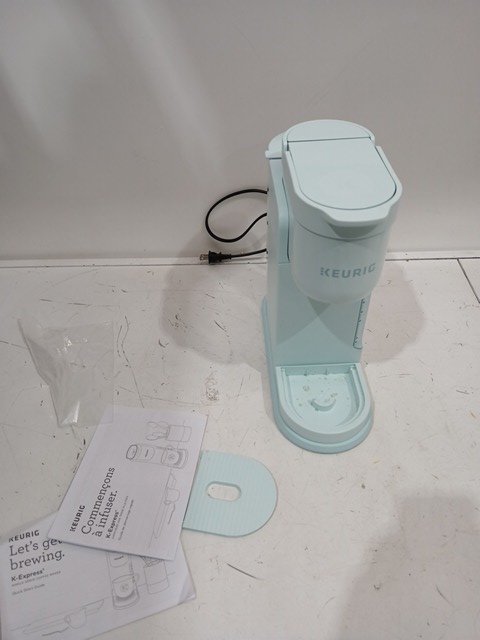 There is coffee residue on the machine indicating prior use. Tested for power.
