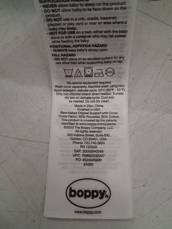 BOPPY ORIGINAL SUPPORT/NURSING PILLOW for 0-12 MONTHS - 22" x 18" - GREY TAUPE LEAF (MODEL: ‎00056029240490)