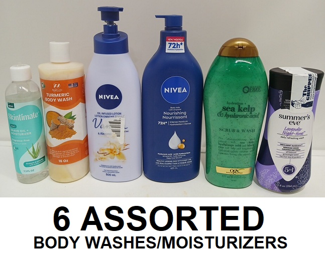 6 assorted body WASHES/ MOISTURIZES - assorted brands and sizes