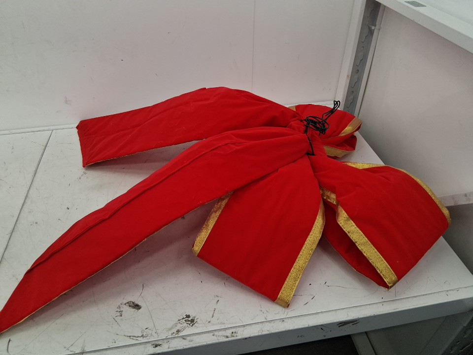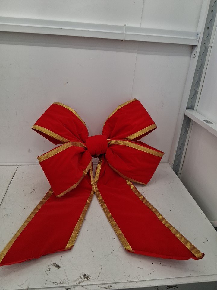 Novelty Lights 4-LOOP WIRE PADDED VELVETEEN CHRISTMAS BOW - LARGE - 24" - RED/GOLD