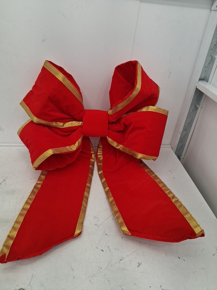 Novelty Lights 4-LOOP WIRE PADDED VELVETEEN CHRISTMAS BOW - LARGE - 24" - RED/GOLD