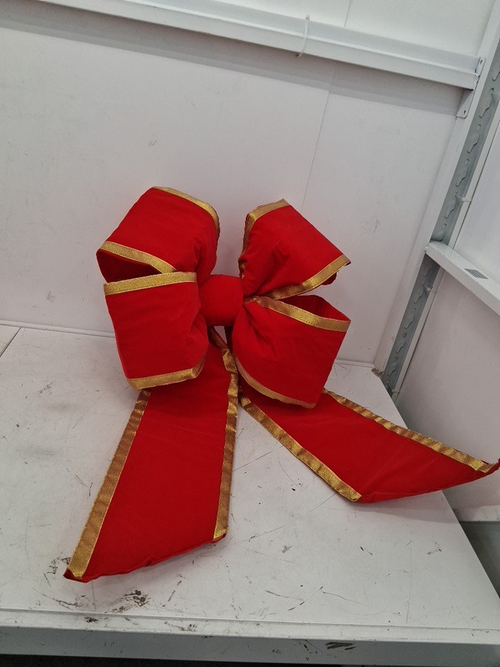 Novelty Lights 4-LOOP WIRE PADDED VELVETEEN CHRISTMAS BOW - LARGE - 24" - RED/GOLD
