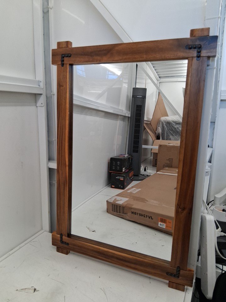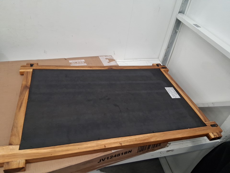 COSTWAY Framed Mirror with Acacia Wood Frame and Vintage Rivet Design - VERTICAL/HORIZONTAL - 33" X 22" - BROWN